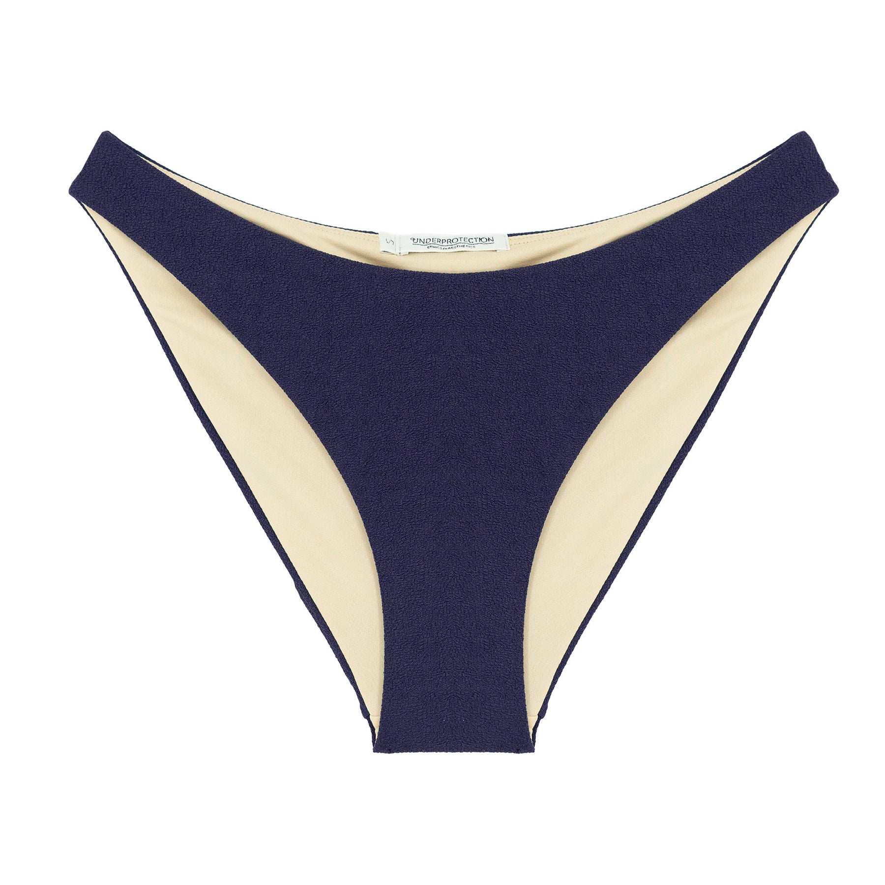 Our Sacha bikini briefs in navy are crafted from soft, recycled polyester with a beautiful textured finish. The classic cut flatters your curves while offering all-day comfort and a timeless fit. Complete the set with our matching Sacha bikini bra or Sacha bikini bandeau for a beautiful beach look.